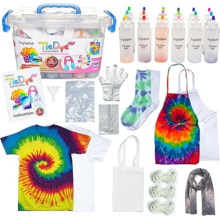 TBC The Best Crafts Kids Paint Set. Stocked with 18 bottles of vibrant One-Step Dye 6 pairs of gloves 6 sets of rubber bands a disposable plastic table cover and a project guide this kit gives your six tie-dye partygoers easy access to tons of tie-dye fun. Youll get a total of 18 bottles in our tye die kits for adults--three times more than cheap tie dye kits.